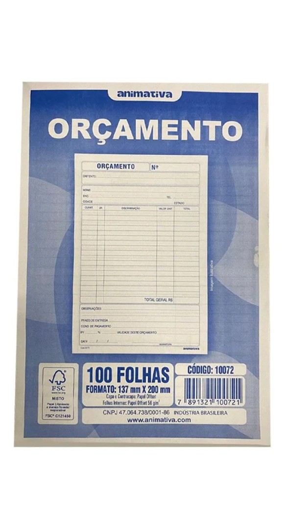 Detalhes: Blocos de orçamento confeccionado em papel ideal para escrita
