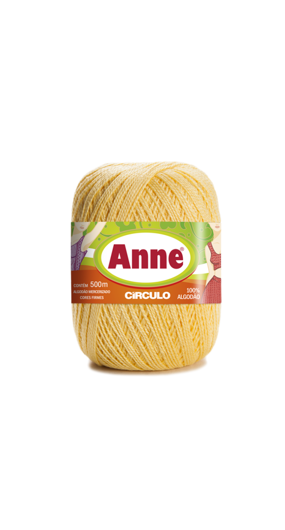O fio Anne é um produto 100% algodão mercerizado, que proporciona acabamento cintilante e toque macio a sua confecção. Quando trabalhado com pontos mais fechados para meia estação e inverno, mantém a sua peça leve e suave. Na decoração é indicado principalmente para confecção de trilhos de mesa, toalhinhas decorativas, barrados em toalhas e panos de copa, pois possui um excelente rendimento.