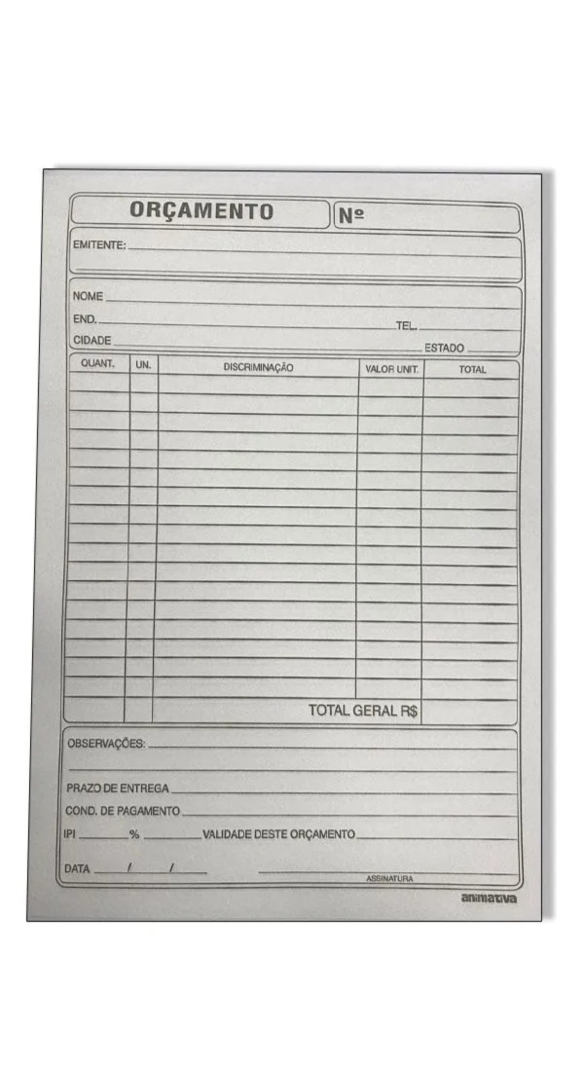 Detalhes: Blocos de orçamento confeccionado em papel ideal para escrita